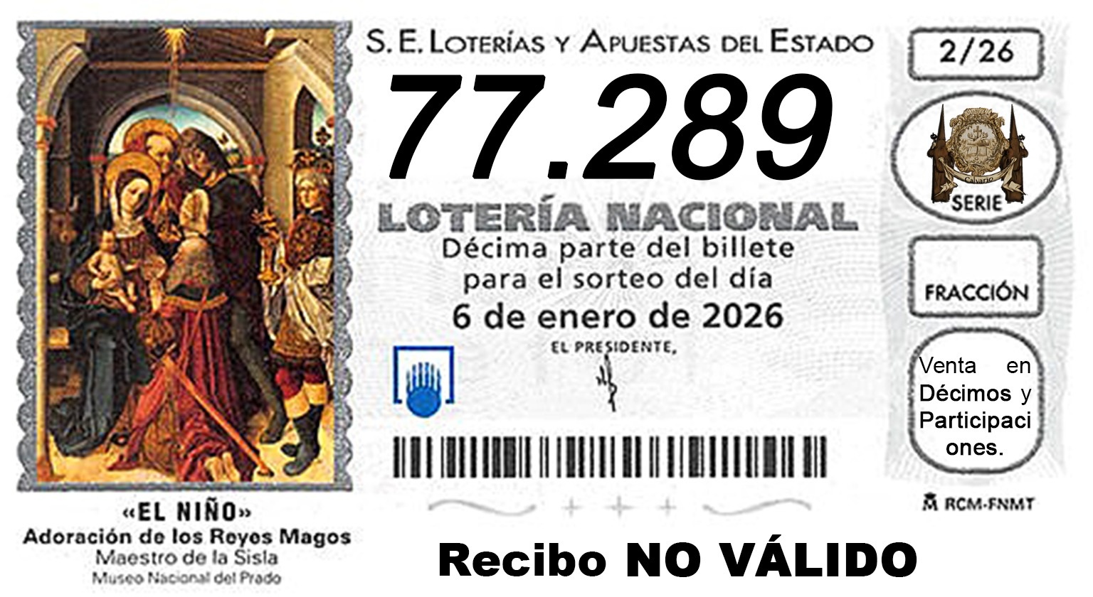 † Desde hace varios días, se encuentra a la venta el número de la Lotería del Niño que jugaremos el próximo día 6 de Enero, dicho número será el 77.289.