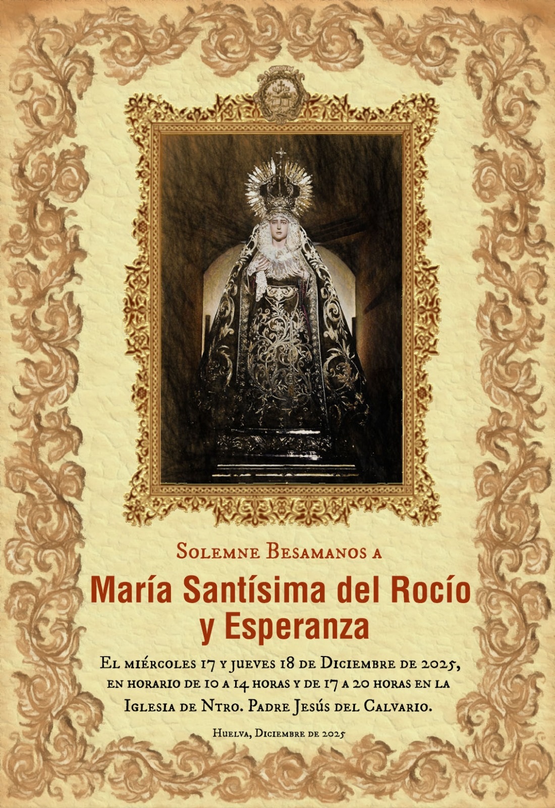 † SOLEMNE BESAMANOS. Los próximos días 17 y 18 de Diciembre, en horario de 10:00 a 14:00 horas y de 17:00 a 20:00 horas, SOLEMNE BESAMANOS a nuestra Titular, en la Iglesia de Nuestro Padre Jesús del Calvario.