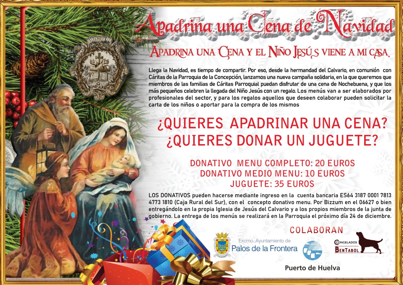 † Como viene siendo tradicional, con la vista puesta en el próximo 24 de diciembre, la hermandad volverá a realizar la campaña "APADRINA UNA CENA DE NAVIDAD", con la que un año más asistiremos al centenar de usuarios de Cáritas de la Parroquia de la Purísima Concepción.