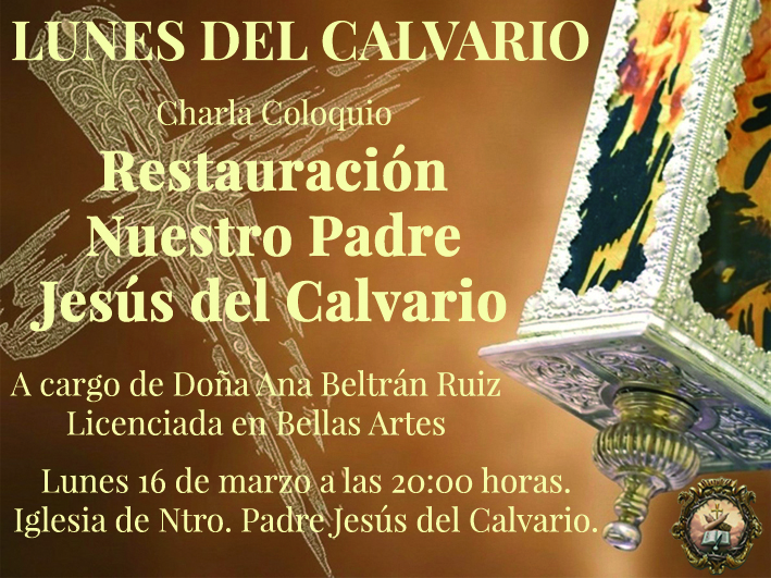 Para esta ocasión, el tema a tratar será la restauración de Nuestro Padre Jesús del Calvario, realizada recientemente por la Licenciada en Bellas Artes, Doña Ana Beltrán Ruiz.
